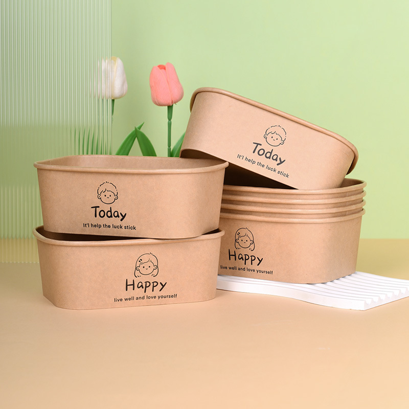This 750ml rectangular kraft paper food container is perfect for picnics, camping, and takeaway fruit and salad packaging. It's sturdy, leak-proof, healthy, and environmentally friendly. Directly supplied by the manufacturer, with competitive pricing for bulk orders.