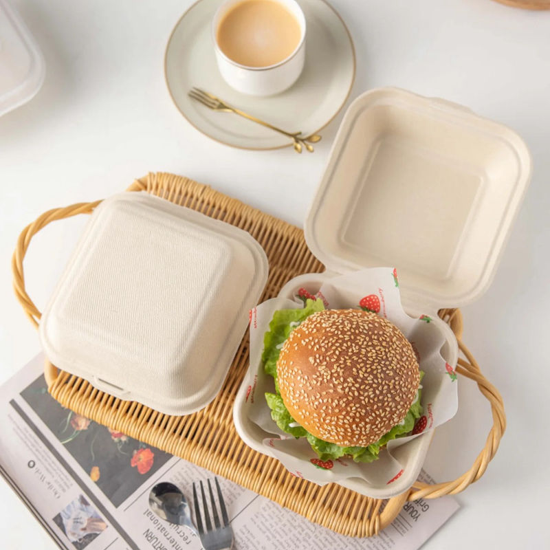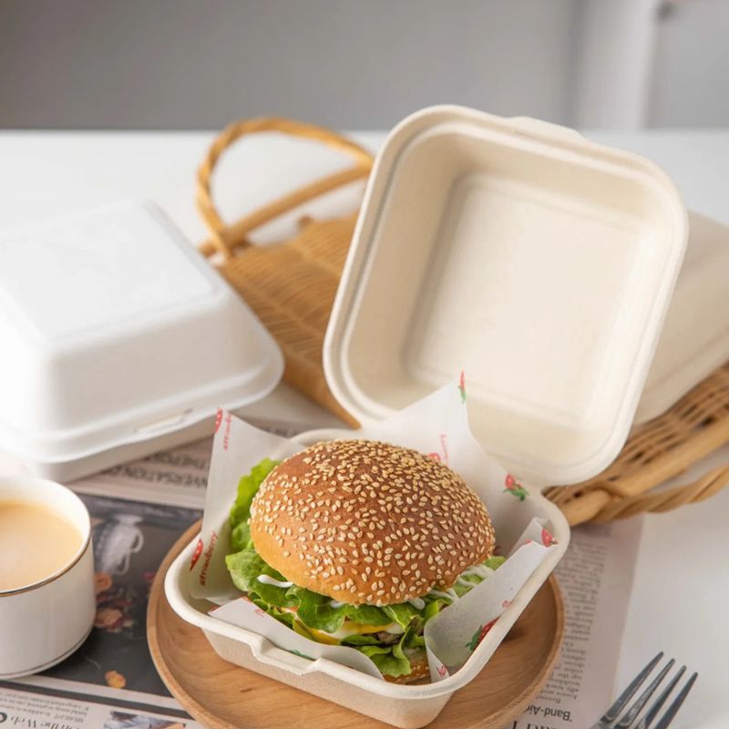 6-inch hamburger packaging boxes, wholesale disposable takeaway cake and bento boxes, pulp material, biodegradable fruit cake boxes.