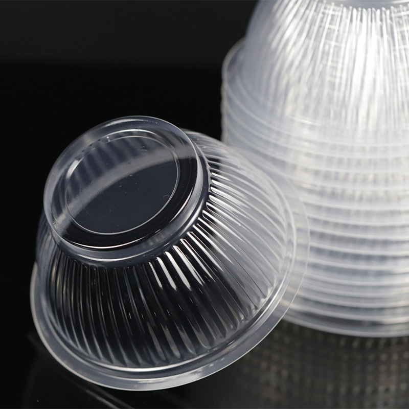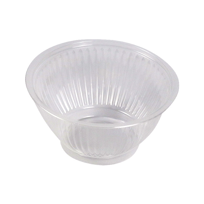 Directly supplied by the manufacturer, this 360ml transparent round striped soup bowl is made of thickened PP material, making it durable and sturdy. The lidless design is suitable for various types of food. Wholesale and customization options are available, making it an ideal choice for catering and takeout businesses.