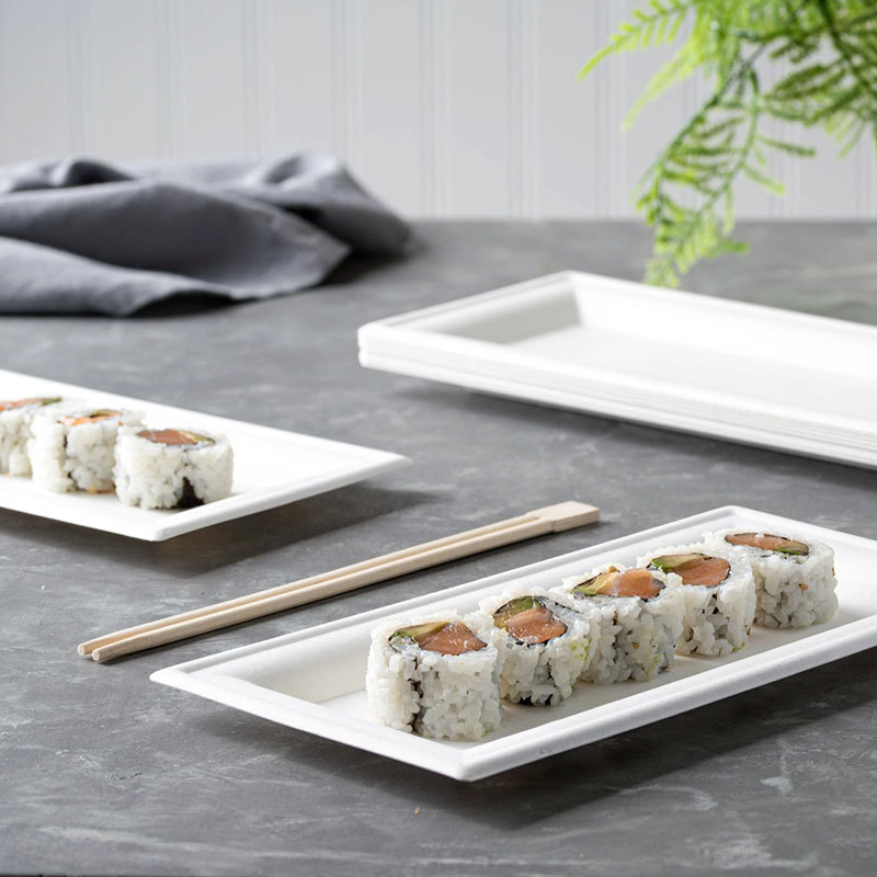 Raw Sugarcane Bagasse Plate, Eco-friendly Square Tray for Home Baking and BBQ