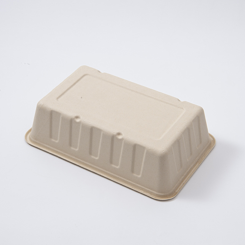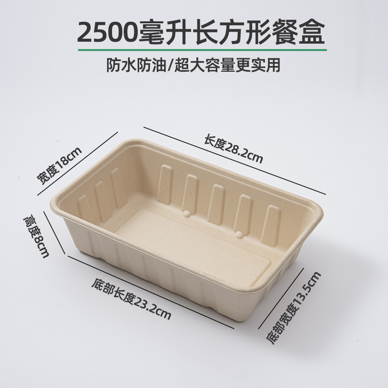 This 2500ml large capacity rectangular paper pulp lunch box is suitable for takeout, bento boxes, and light meals. Made of eco-friendly and biodegradable material, it's lightweight, sturdy, and spacious, combining practicality and environmental friendliness for a worry-free choice for everyday meals.