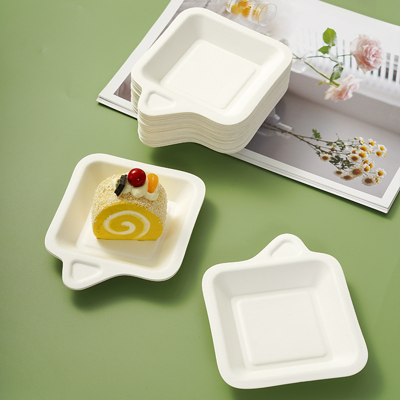 Disposable thickened paper plates, simple design paper plates, cake forks and plates, rectangular paper plates, biodegradable cake plates.