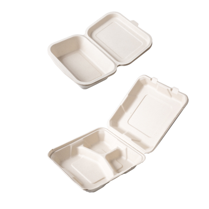9-inch disposable biodegradable paper pulp food container with lid, integrated design, suitable for takeout and delivery, food-grade bento box, biodegradable.